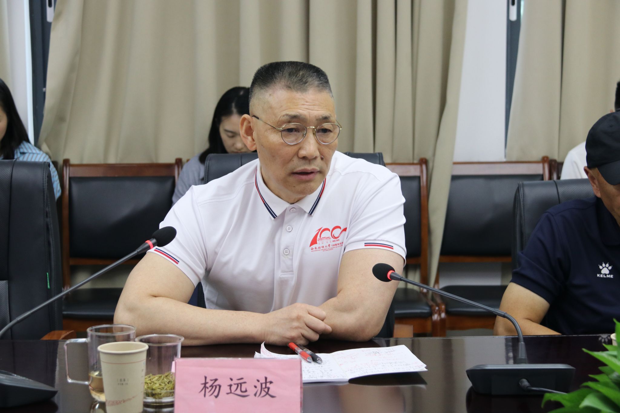 名誉院长杨远波发表讲话。他深情回顾了学校百年筚路蓝缕、弦歌不辍的光辉历程,号召师生铭记学院从创立、发展到如今崭新局面的奋斗足迹。他指出,今日学院在人才培养、学科建设、体教融合、社会服务等方面取得的成就来之不易,凝聚着一代代师生的心血与汗水。