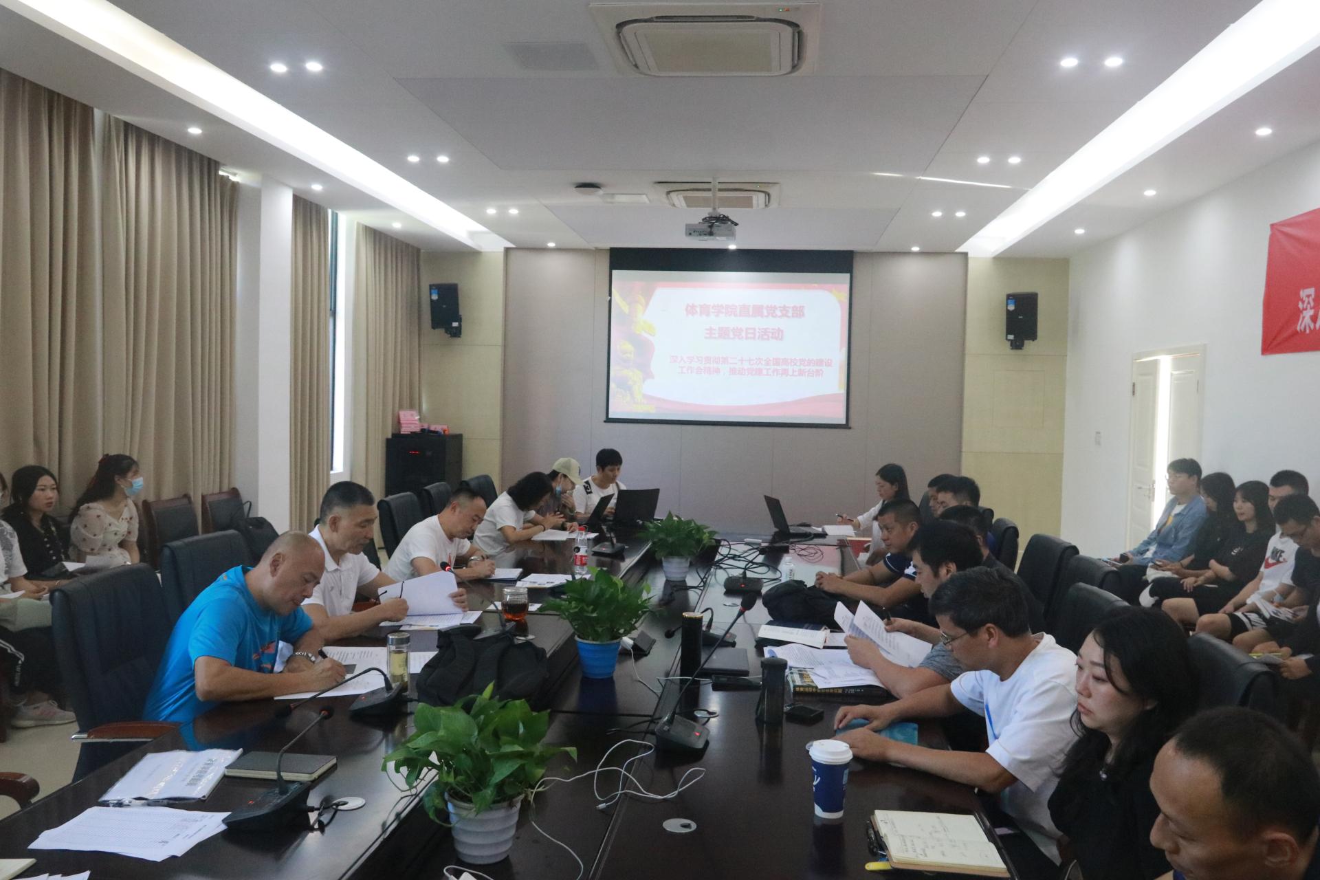 9月28日,九游在线直属党支部在游泳池二楼会议室开展主题党日活动,深入学习贯彻第二十七次高校党的建设工作会精神。支部全体师生党员参加,活动由党支部书记杨远波主持。