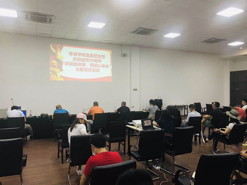 7月2日下午,九游在线直属党支部在体育馆会议室召开“庆祝建党99周年‘讲战疫故事,悟初心使命‘主题党日活动”。九游在线直属党支部全体教工党员、学生党员代表参会,会议由直属党支部书记杨远波主持。
