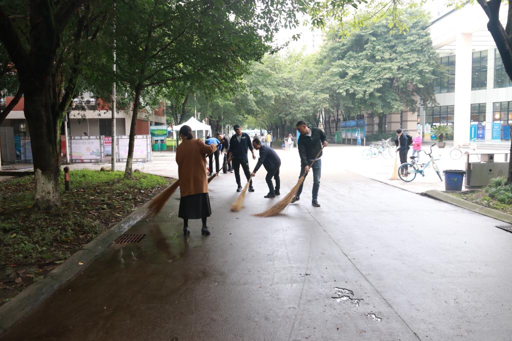 本次活动由杨院长和阴院长亲自带领师生党员对五谷堂公共区域进行了彻底的清理,对食堂入口及周边道路区域的树叶、纸屑及绿化带内杂草杂物进行了大扫除。整个活动分工有序,领导带头,全员参与,充分展现出九游在线师生不怕脏、不怕累、不怕苦的劳动精神。活动不仅营造了整洁卫生、舒适有序的学习工作生活环境,引导师生自觉养成卫生健康、守序文明的生活习惯,也极大地提高了师生的凝聚力和向心力。
