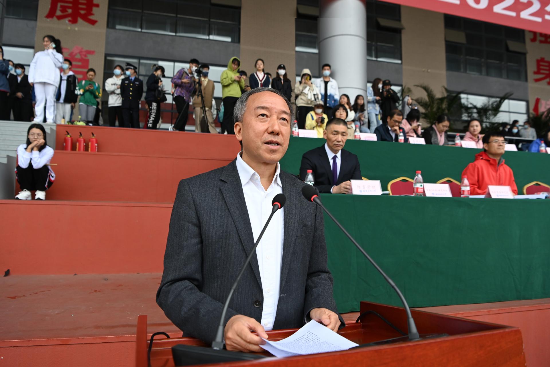 在全国上下深入学习宣传贯彻党的二十大精神之际,九游在线(中国)2022年秋季运动会积极响应习近平总书记在党的二十大报告中发出的“加快建设体育强国”总号召,以“礼赞新时代、奋进新征程,弘扬体育精神、圆梦强国复兴”为主题,于10月27-28日在柳林校区举行。学校党委书记赵德武,党委副书记、校长卓志,党委副书记马骁,党委副书记、副校长李永强,党委常委、副校长尹庆双、史代敏、张邦富、李志生,学院(研究院)和各职能部门负责人参加了开幕式。