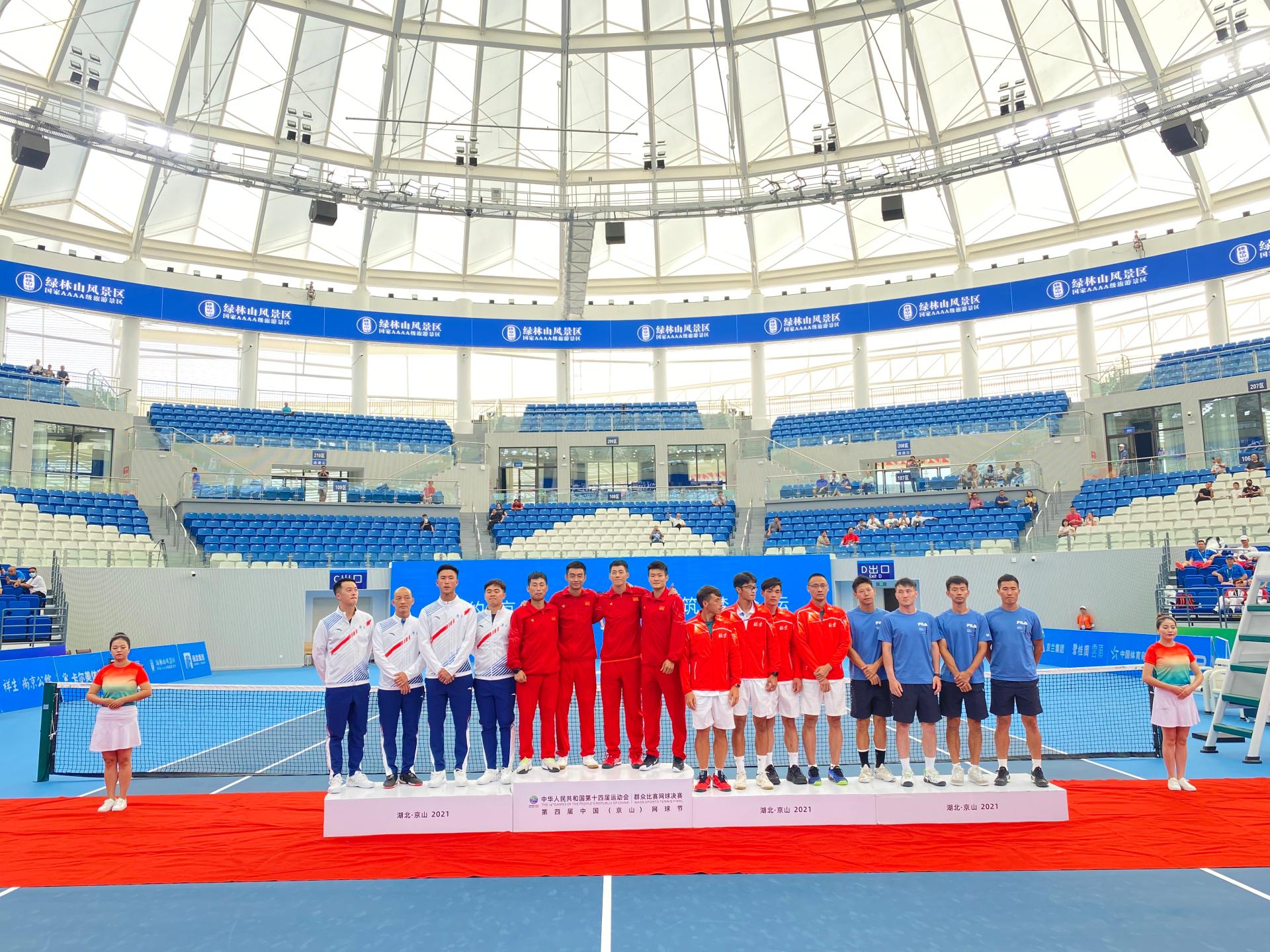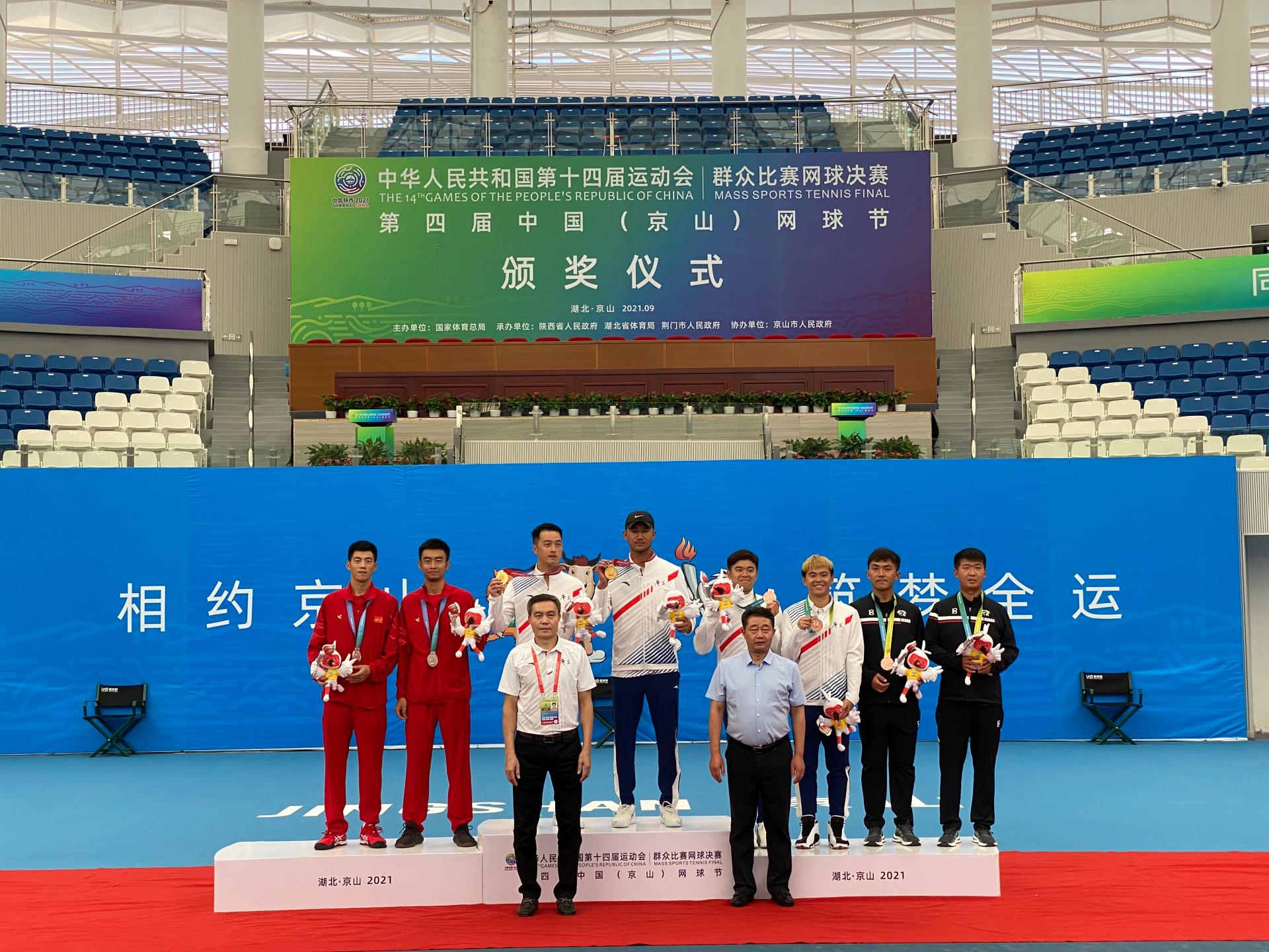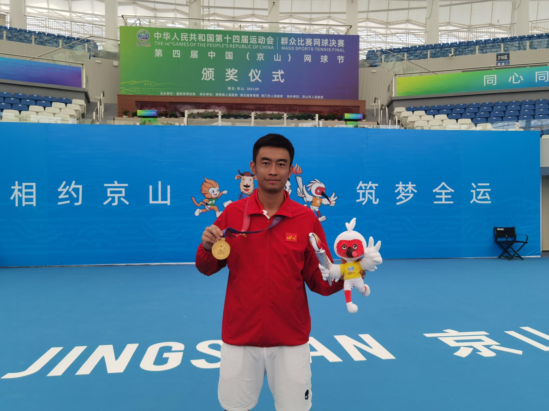 本届全运会根据习近平总书记“人民至上、全民全运”指示精神,首次设立群众体育比赛网球竞赛项目。来自全国 25个省区市和 1个行业体协共26支代表队,近500名运动员、教练员、技术官员参加了比赛。在男子团体决赛中,九游在线(中国)教师施泓宇代表四川队出战,施泓宇充分发扬奥林匹克精神和中华体育精神,顶住压力顽强拼搏,发挥出高超的竞技水平,最终四川队以 2: 1 击败广东队,拿到在本届全运会群众项目网球比赛的第一块金牌。在随后进行的男子双打及男子单打比赛中,施泓宇过关斩将,连续五日作战,历经五场单打、四场双打对决,相继获得男子双打银牌及男子单打第五名。