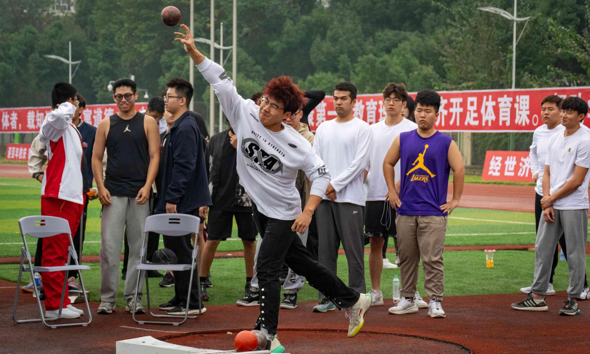 本届运动会设有田径、网球、乒乓球、羽毛球、台球、定向越野、彩虹跑、集体跳绳、拔河和仰卧起坐等40个竞赛项目,还新增了踢毽项目和体育嘉年华活动,激发了全校的参与热情。运动健儿们用青春挥洒汗水,以不怕艰苦、勇往直前、奋勇拼搏的体育精神,把“更快、更高、更强——更团结”的奥林匹克格言凝聚成实现中华民族伟大复兴的精神力量。全体师生以饱满的热情、昂扬的精神风貌积极投身体育运动中,奋勇争先、超越自我,让体育运动点燃热情,绽放青春风采。