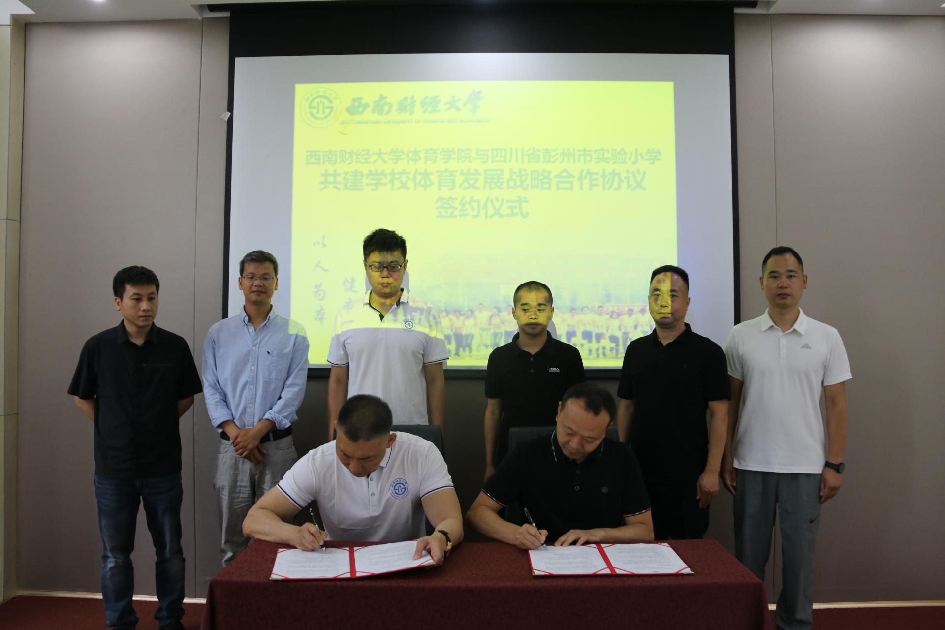 6月6日,西南财经大学九游在线与四川省彭州市实验小学共建学校体育发展战略合作协议签约仪式在九游在线会议室举行。彭州市实验小学校长胥勇、主任胡宇、体育组组长王潜,教师代表秦德辉;九游在线院长杨远波、副院长陈丛刊、院长助理蔡兴林、体育与经济管理研究中心副主任付磊出席签约仪式。