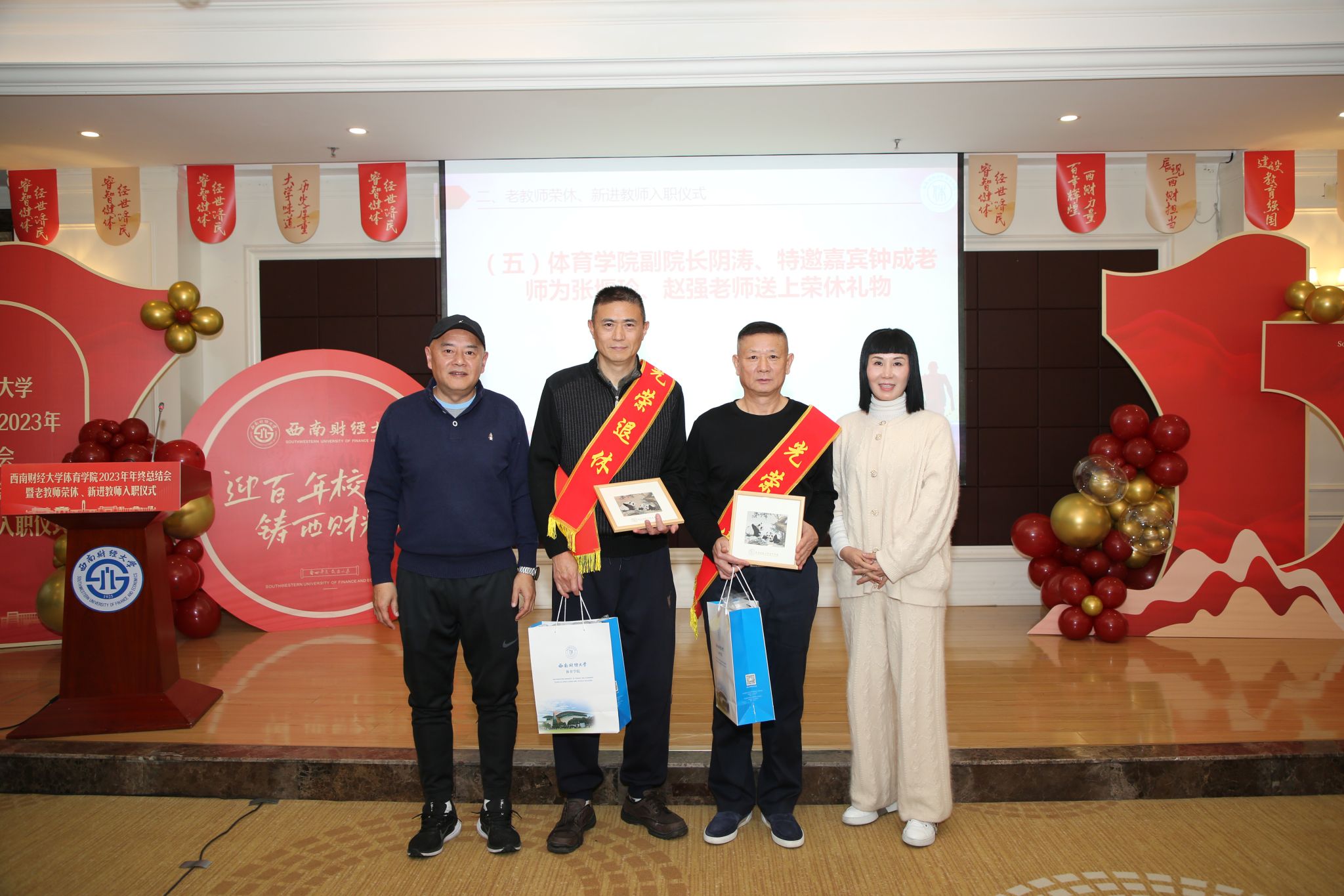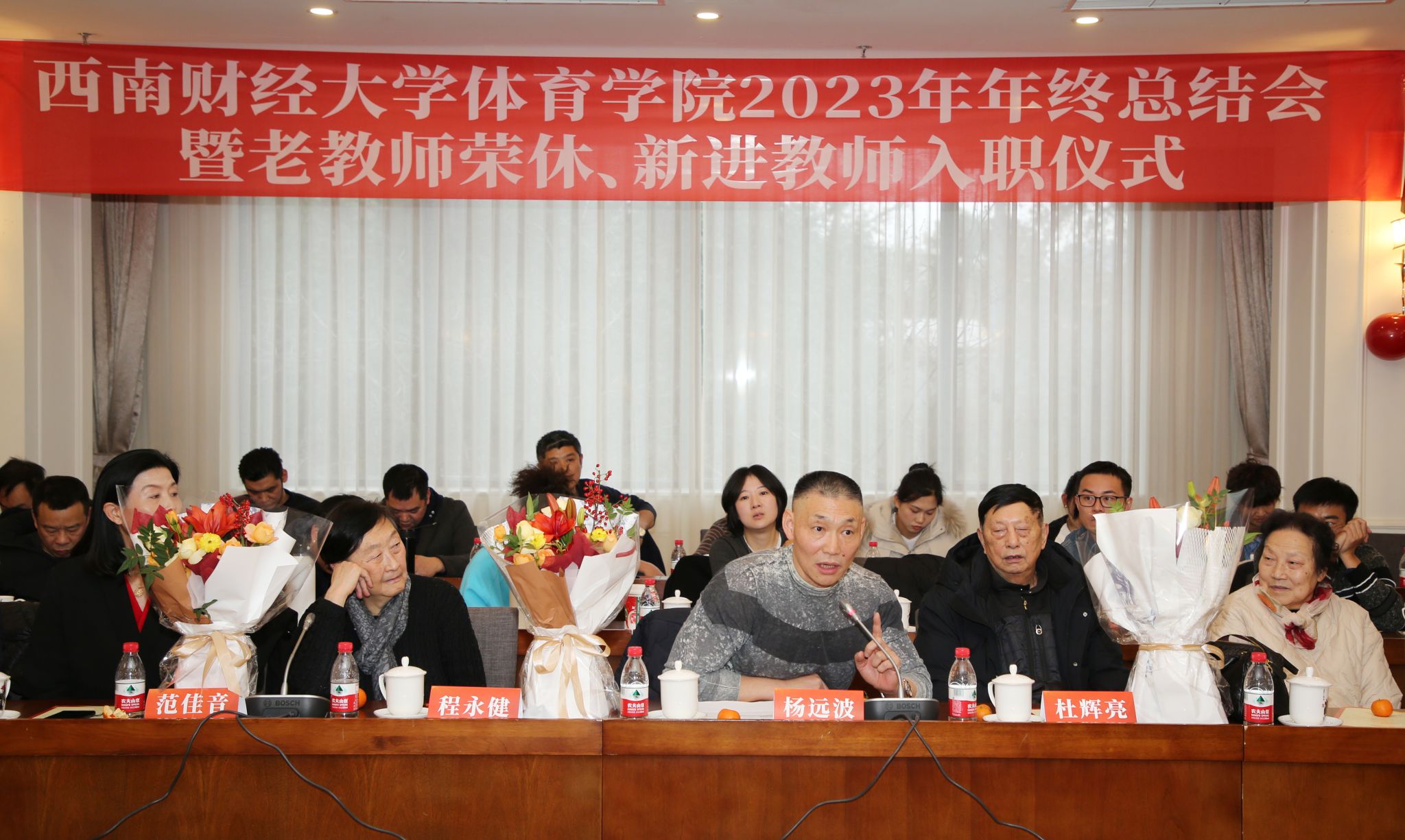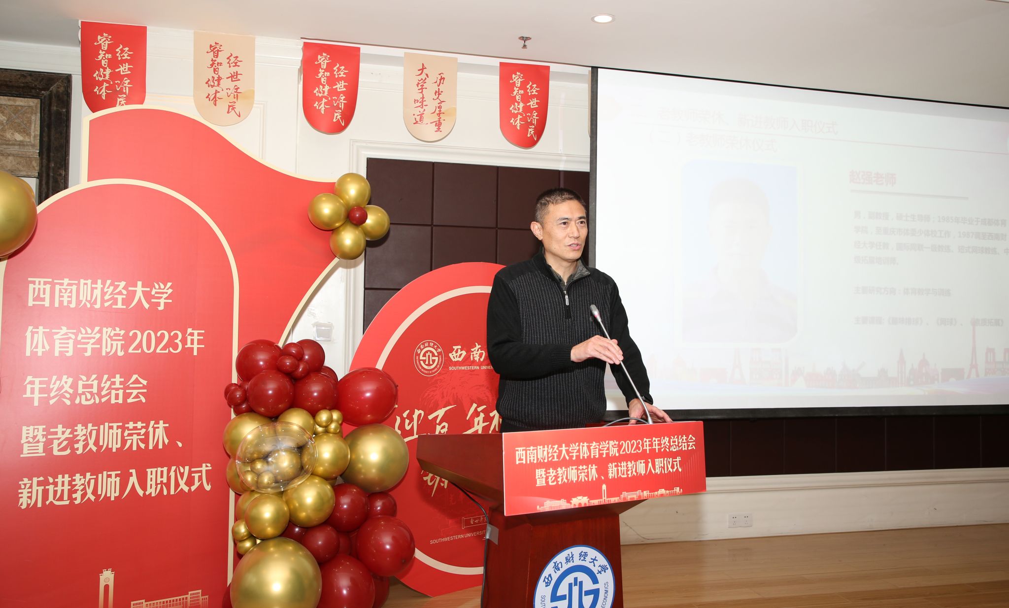 杨远波代表学院向荣休的张堰玲、赵强两位教师表示衷心的感谢并致以良好的祝愿,向新入职的青年教师表示热烈的欢迎。他指出,老教师荣休、新教师入职仪式作为学院师德师风建设的一项重要内容,目的是赓续百年初心,担当育人使命,让红色血脉生生不息、让“睿智健体、经世济民”的西财体育人文精神代代相传。张堰玲、赵强见证了九游在线的发展,他们四十年如一日与学院同荣辱、共成长,默默奉献、朴实无华、不求名利,为学院和学校的发展付出了毕生心血、作出了重要贡献。希望老教师们保重身体,一如既往支持学院发展。同时,他对新入职的教师提出希望:坚持“四个相统一”,将立德树人贯穿教书育人全方位全过程,争做“四有好老师”和新时代“大先生”,牢记为党育人、为国育才使命,为培养德智体美劳全面发展的社会主义建设者和接班人作出新的更大贡献。当前,正值全校上下喜迎百年校庆之际,从黄浦、光华、柳林的薪火相传中,汲取西财体育发展的力量,做好冲刺之年学院迎百年校庆的相关筹备工作,是每一位西财体育人光荣的使命和责任,我们一定要凝心聚力、同心筑梦,为学校百年华诞绘就丰富多彩的体育画卷。