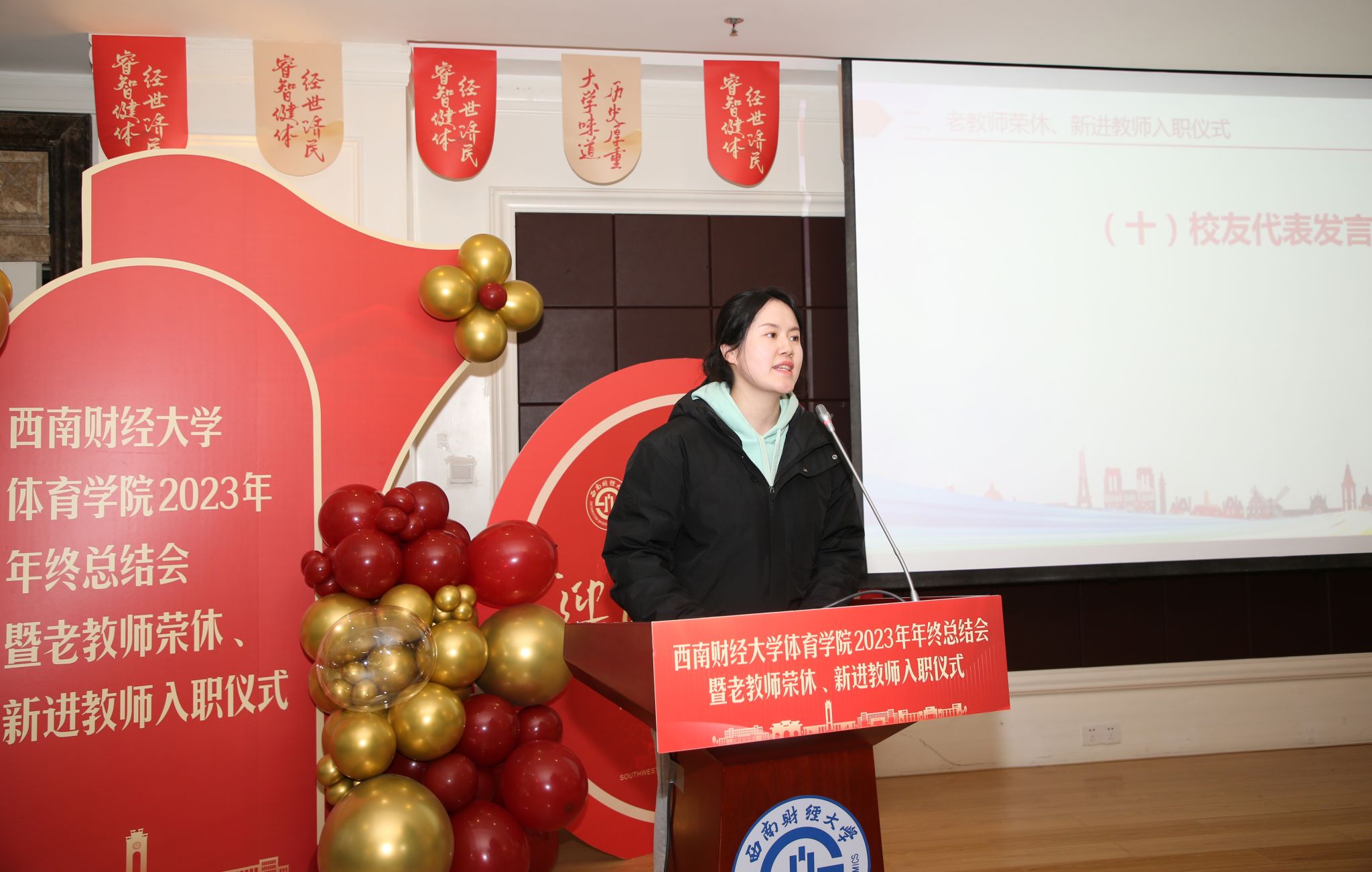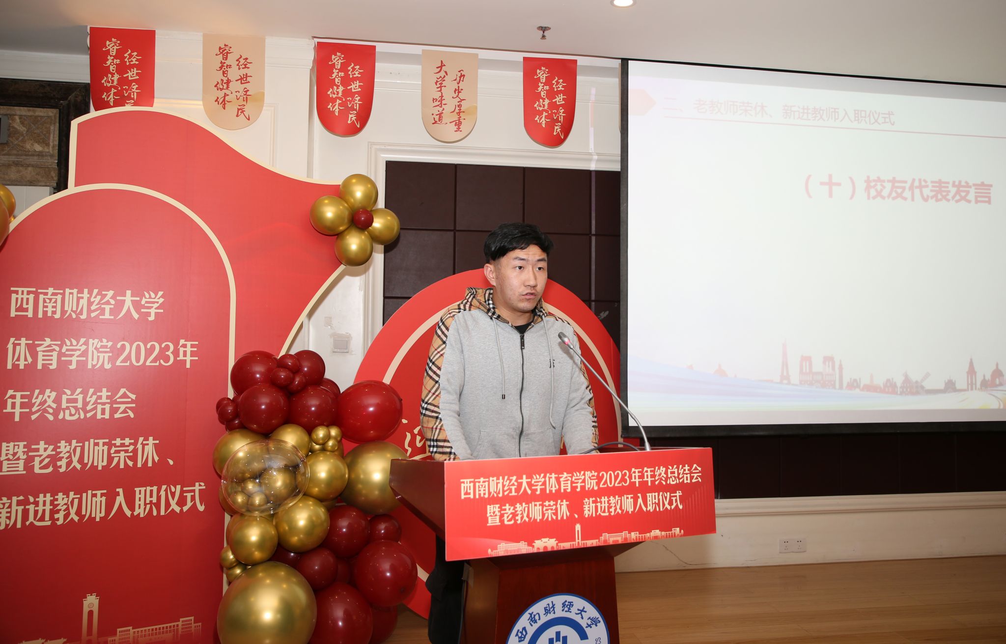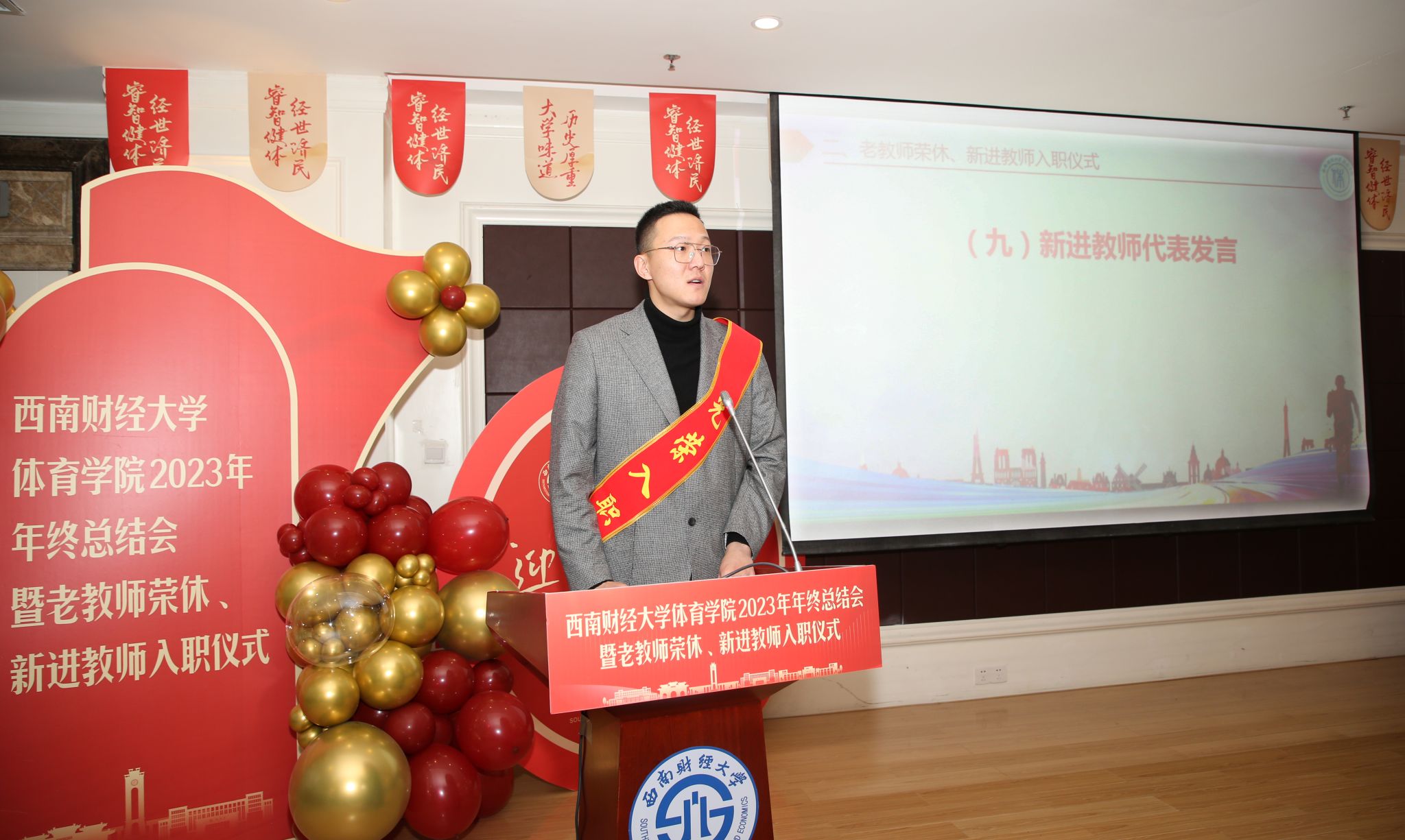 杨远波代表学院向荣休的张堰玲、赵强两位教师表示衷心的感谢并致以良好的祝愿,向新入职的青年教师表示热烈的欢迎。他指出,老教师荣休、新教师入职仪式作为学院师德师风建设的一项重要内容,目的是赓续百年初心,担当育人使命,让红色血脉生生不息、让“睿智健体、经世济民”的西财体育人文精神代代相传。张堰玲、赵强见证了九游在线的发展,他们四十年如一日与学院同荣辱、共成长,默默奉献、朴实无华、不求名利,为学院和学校的发展付出了毕生心血、作出了重要贡献。希望老教师们保重身体,一如既往支持学院发展。同时,他对新入职的教师提出希望:坚持“四个相统一”,将立德树人贯穿教书育人全方位全过程,争做“四有好老师”和新时代“大先生”,牢记为党育人、为国育才使命,为培养德智体美劳全面发展的社会主义建设者和接班人作出新的更大贡献。当前,正值全校上下喜迎百年校庆之际,从黄浦、光华、柳林的薪火相传中,汲取西财体育发展的力量,做好冲刺之年学院迎百年校庆的相关筹备工作,是每一位西财体育人光荣的使命和责任,我们一定要凝心聚力、同心筑梦,为学校百年华诞绘就丰富多彩的体育画卷。