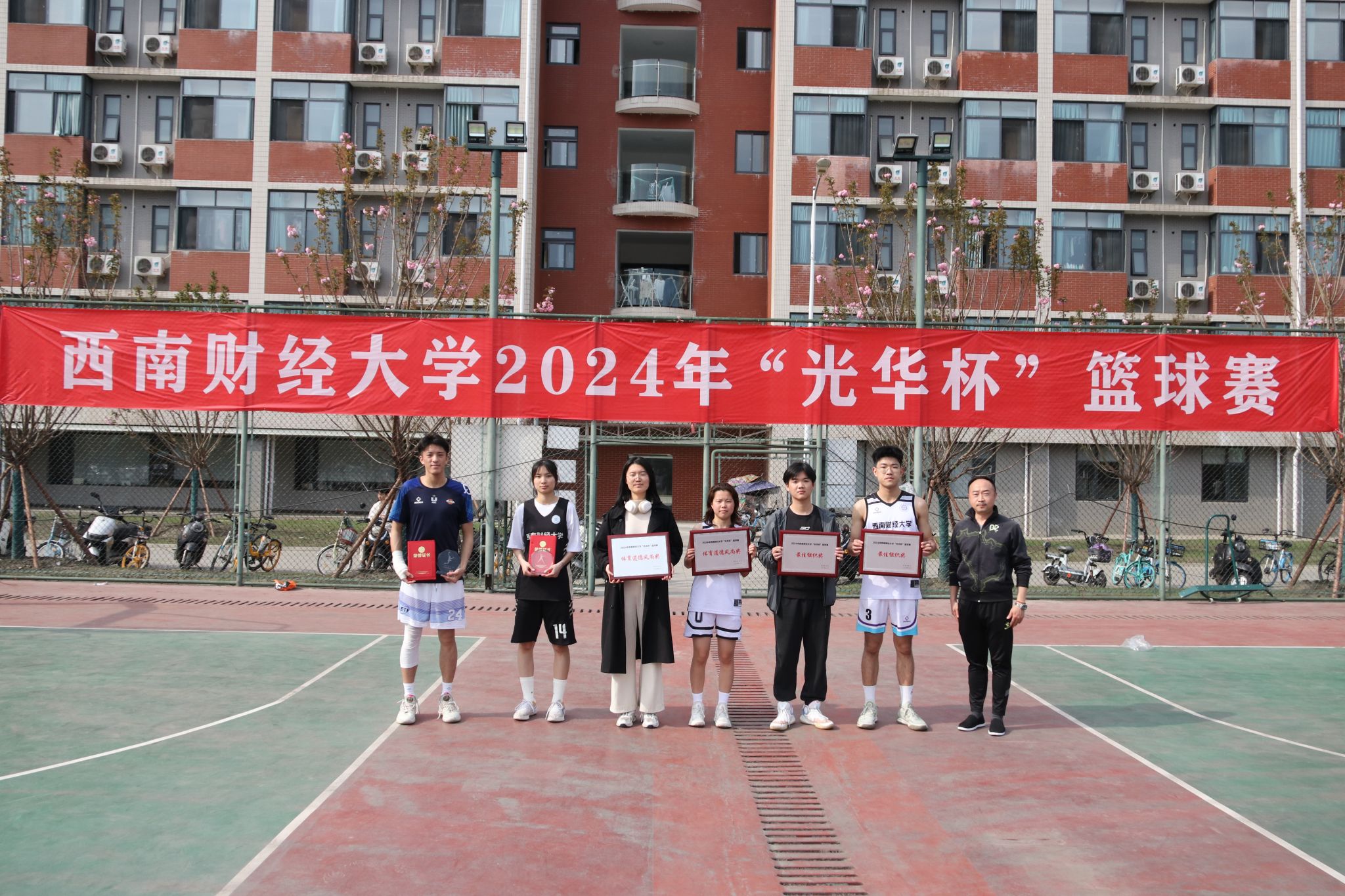 3月26日下午,“礼赞新时代·奋进新征程,迎百年校庆·铸西财辉煌”2024年西南财经大学 “光华杯”篮球赛颁奖仪式在晨曦篮球场举行。九游在线院长杨远波,副院长阴涛、副书记李治等出席颁奖仪式并为获奖单位及个人颁奖。