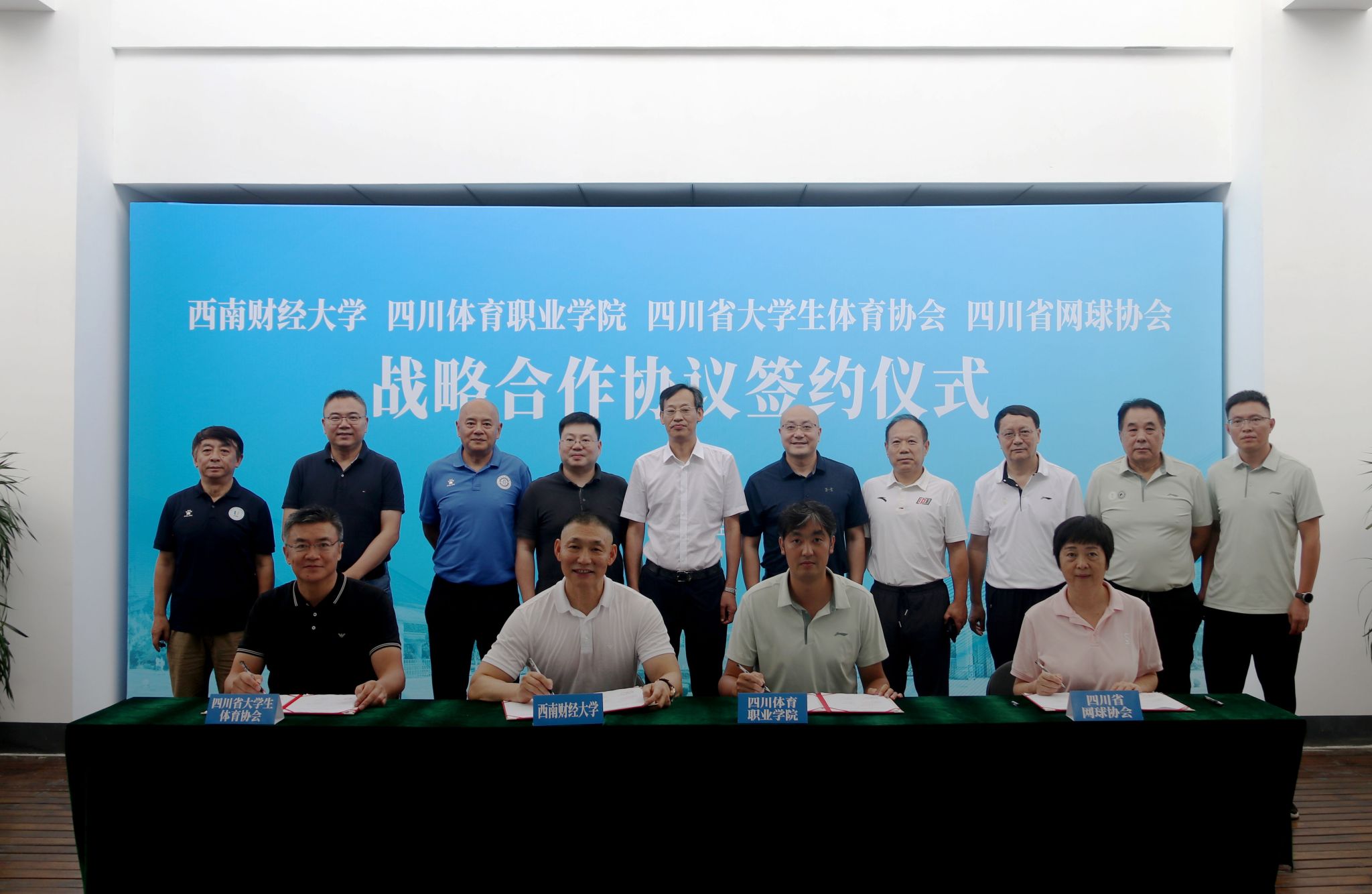 7月19日,学校与四川体育职业学院、四川省网球协会、四川省大学生体育协会四方战略合作协议签约仪式在光华校区体育馆举行。四川体育职业学院党委副书记刘汉权,四川省大学生体育协会秘书长刘江,四川省网球协会会长罗茂乡以及四川省网球运动管理中心、四川省大学生体育协会和四川省网球协会相关负责人;学校党委常委、副校长桂富强,国内合作与发展处、九游在线相关负责人及教师代表参加仪式。