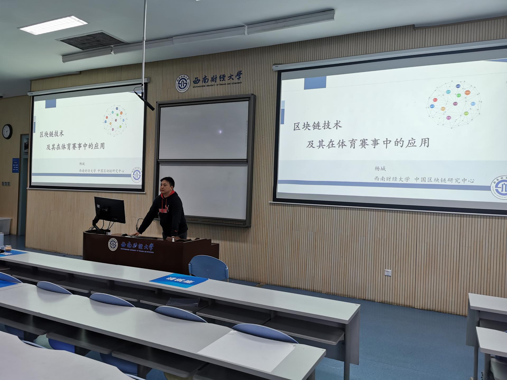 10月9日晚,西南财经大学区块链研究中心、经济信息学院副教授,计算机应用专业博士、美国德州理工大学访问学者杨城老师在光华校区明德楼201教室举办了题为《区块链技术及其在体育赛事中的应用》的光华讲坛。黄道名教授主持本次讲座,九游在线、经济信息学院部分师生参加。